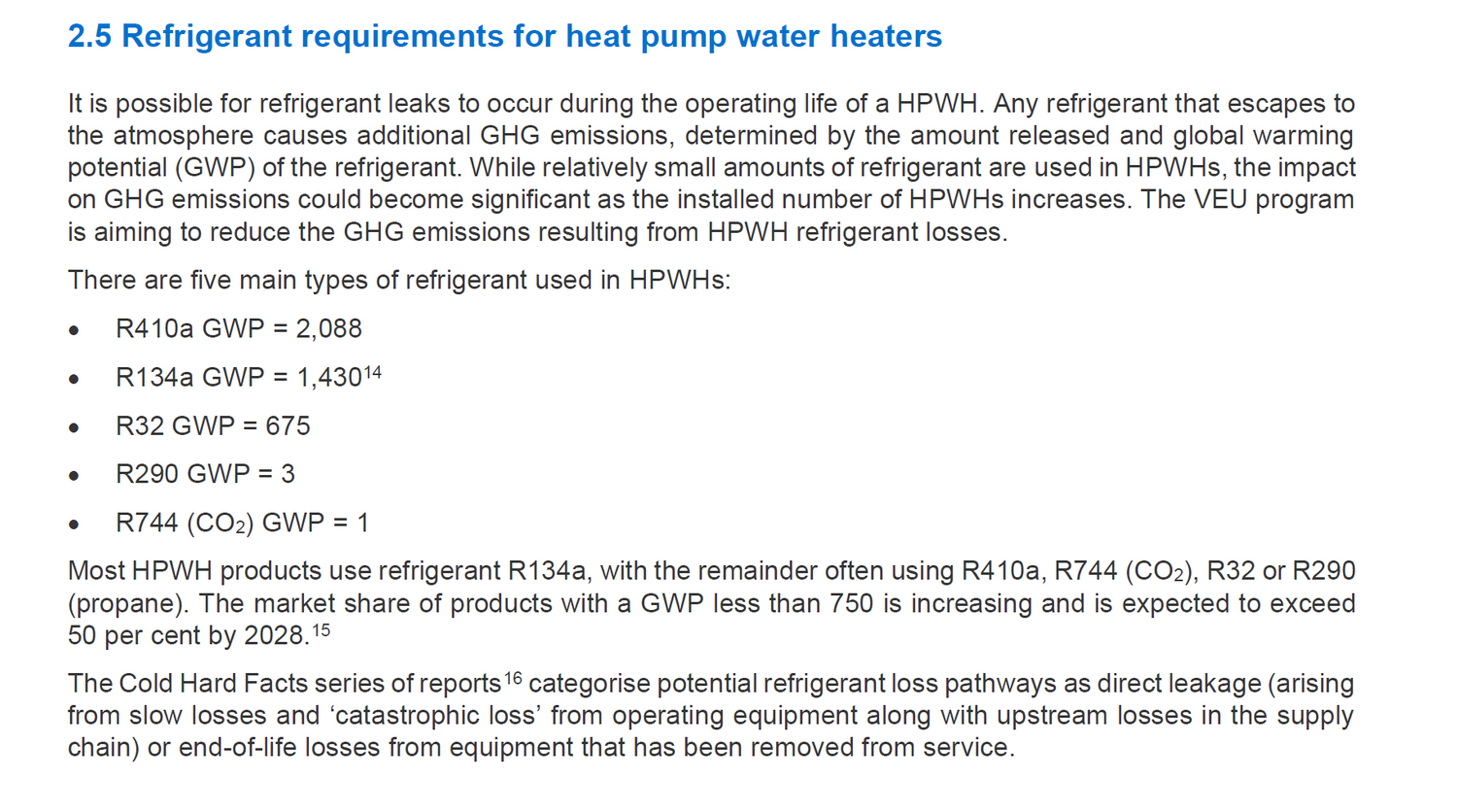For example, the below chart shows various refrigerants and their impact on the environment: